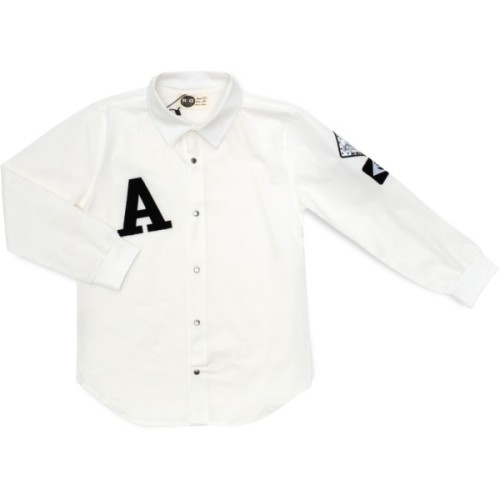 На грудях, з правого боку, нашита літера «А». На лівому рукаві сорочка прикрашена нашивками, а внизу, в бічному шві, вставлено функціональну  металеву блискавку.