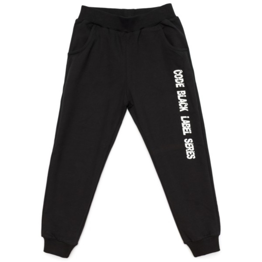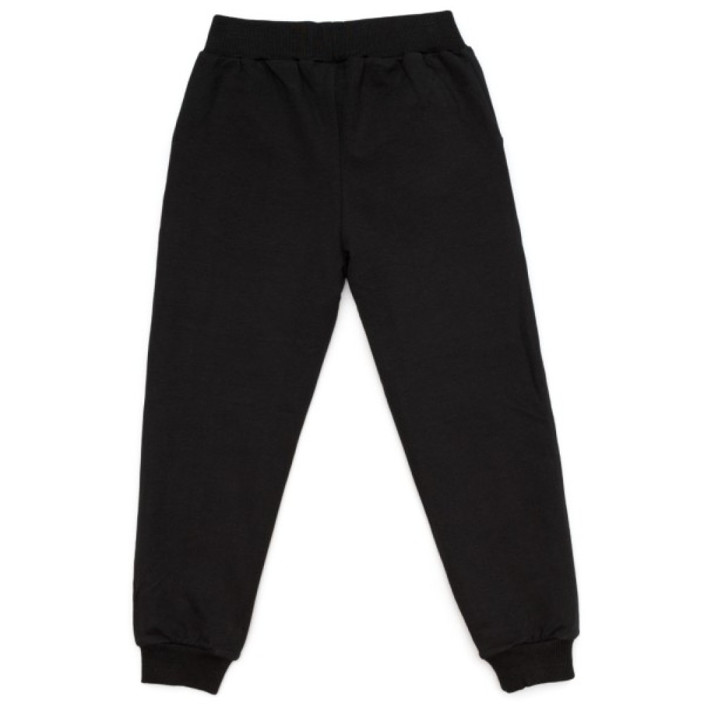 Зручні штани гладко - чорного кольору, із двома прорізними кишенями. Еластичний пояс і манжети, з подвійної трикотажної «гумки», забезпечать затишок і оптимальну посадку по фігурі. Пояс додатково посилено широкою вставленою гумкою.