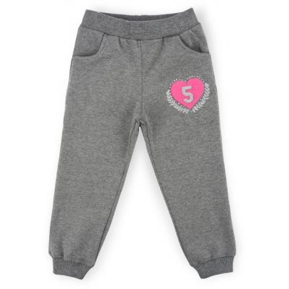 Зручні брюки з двома прорізними кишенями так само прикрашені об'ємним принтом у вигляді серця. Еластичний пояс з подвійної трикотажної «гумки», посилений щільною вставленою «гумкою», і манжети в «гумку» по низу штанин, забезпечать оптимальну посадку по фігурі.