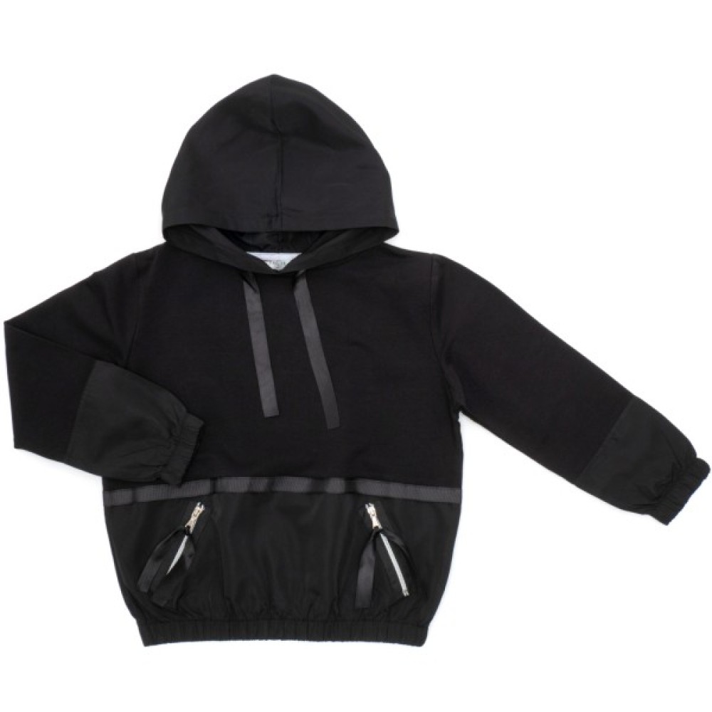 • Модний та дуже ефектний комбінований трикотажний костюм з капюшоном та блискавками для дівчинки в стилі «спортивний шик»: худі і штани.