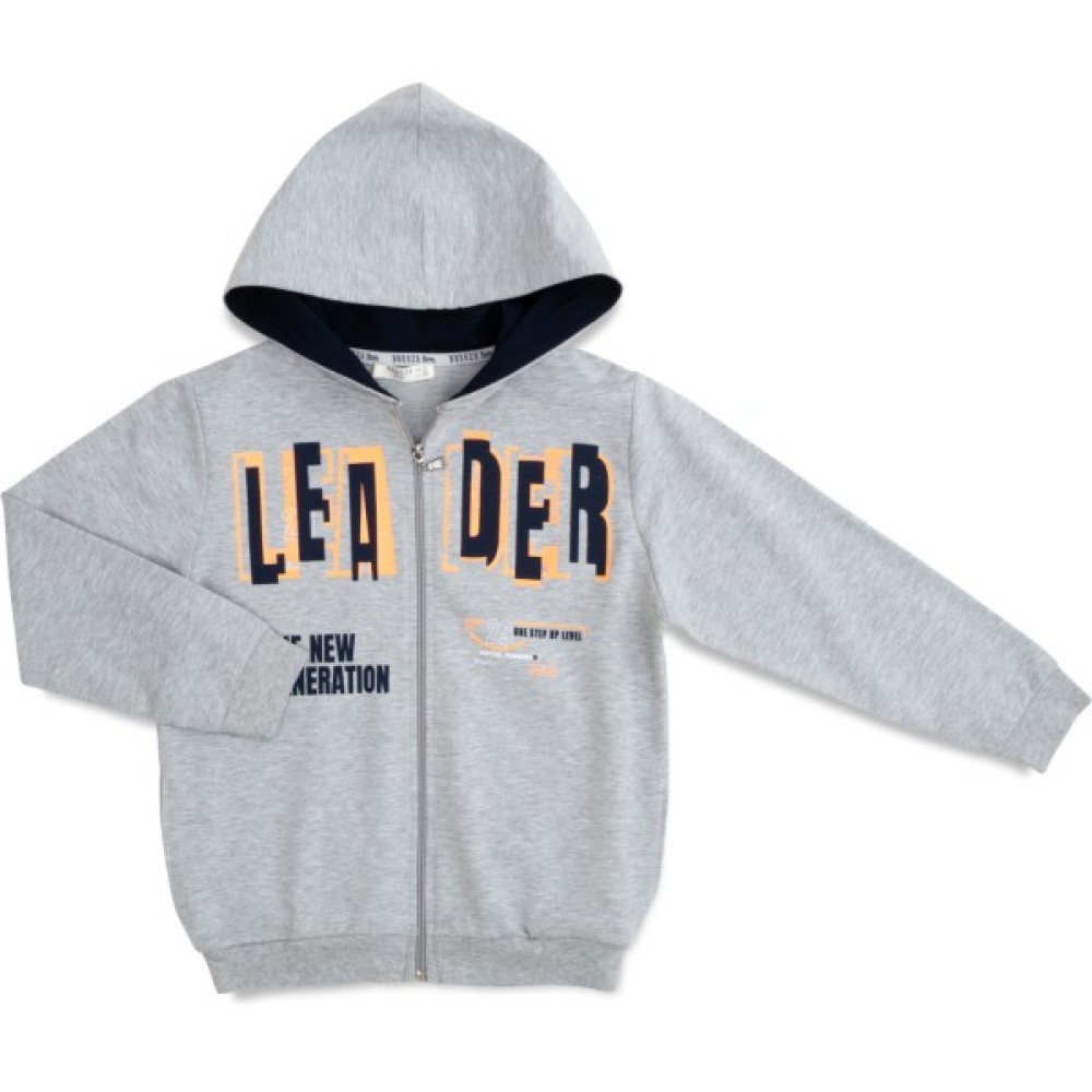 Затишна куртка на «блискавці», сірого меланжевого кольору, з капюшоном, з довгими рукавами, які закінчуються манжетами в гумку.