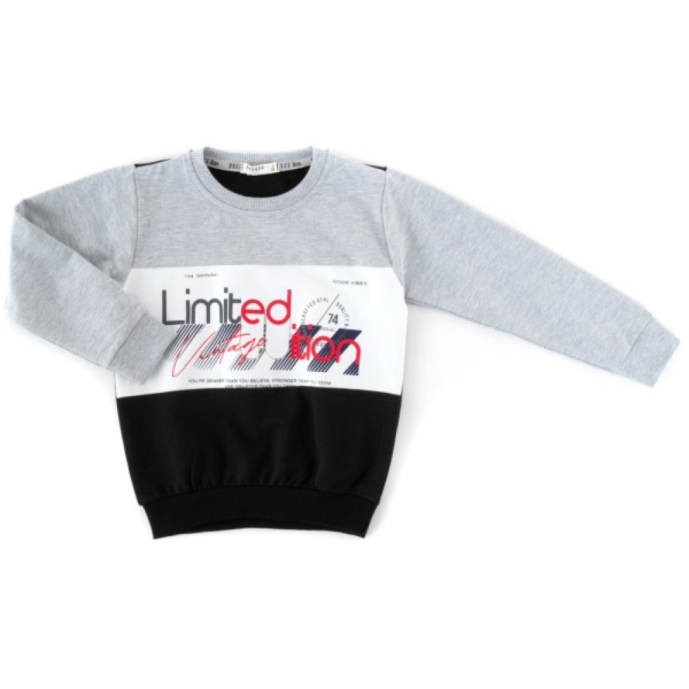 • Зручний світшот прямого силуету під гумку знизу, з довгими контрастними вшивними рукавами, прикрашений спереду стильним кольоровим принтовим накатом. Лінія низу, горловина та манжети рукавів - з дуже якісної, подвійної, щільної трикотажної гумки (рібана).