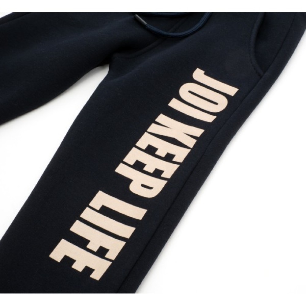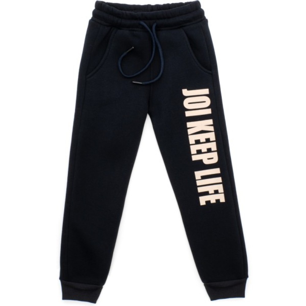 - Теплий, модний спортивний костюм зі стильними принтовими написами від тм Joi для дівчинки: олімпійка з капюшоном та штани на манжетах.