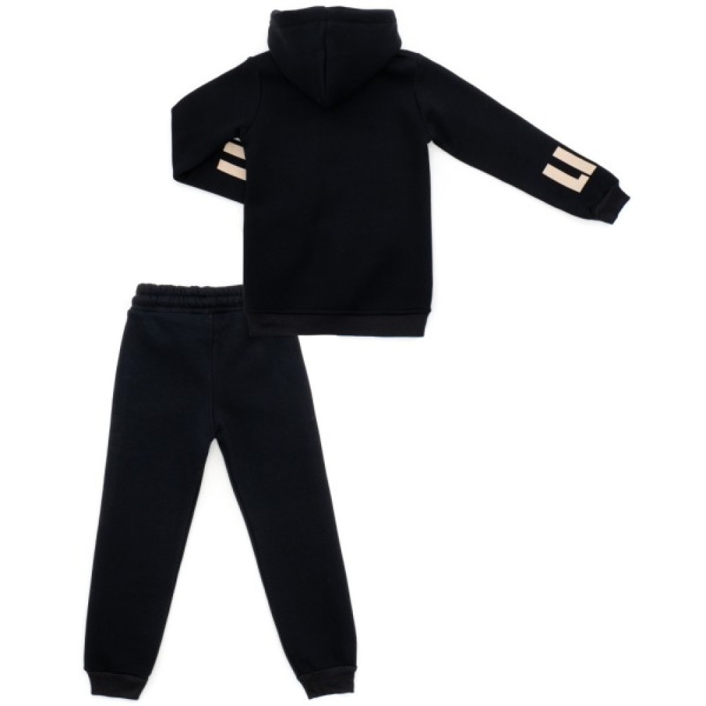 - Костюм прикрашений стильними контрастними принтовими написами на олімпійці та штанях.