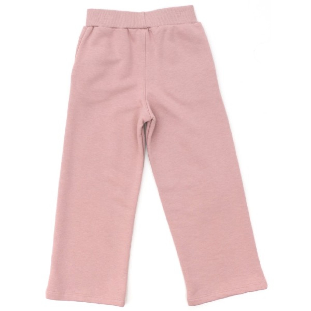 - Модний, ефектний трикотажний костюм для дівчинки в розкішному поєднанні кольорів крему та рожевої пудри: вільний світшот і прямі штани-труби.