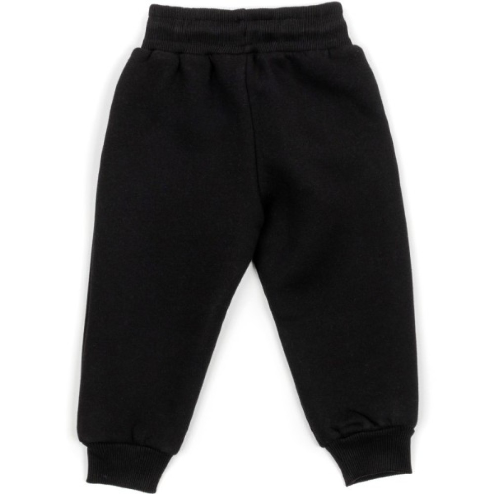 • Зручні, не широкі штани на манжетах, з двома бічними прорізними кишенями без застібки та з еластичним широким трикотажним поясом з подвійної трикотажної «гумки», забезпечать комфорт при носінні та оптимальну посадку по фігурі. В пояс, додатково вставлений, функціонуючий круглий яскраво-синій шнурок з пластиковими накінечниками. Штани прикрашені стильним яскравим принтовим накатом у вигляді написів.