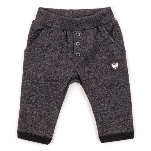 Зручні, меланжеві спортивні штани чорно-сірого кольору (антрацит) з передніми скошеними, прорізними кишенями і модними, підвернутими, фіксованими підворотами з низу.