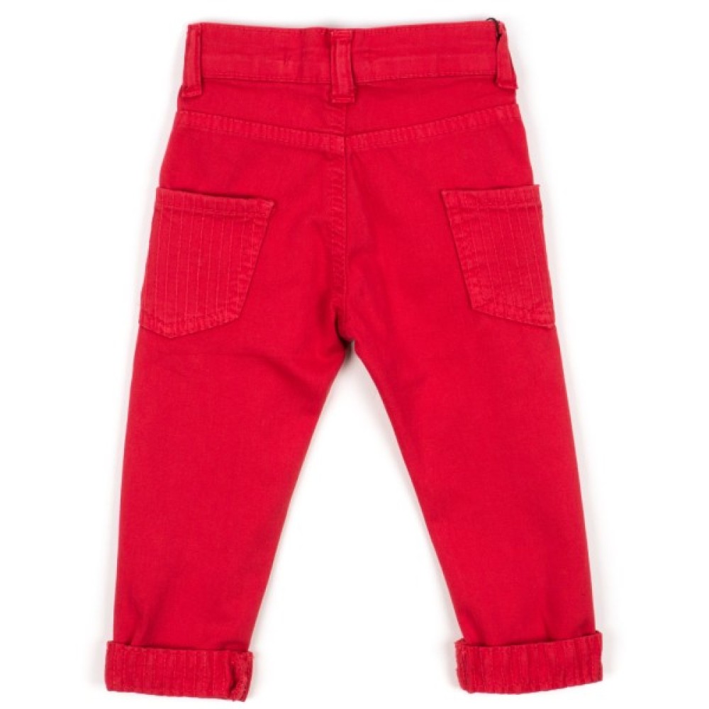- Зручні дитячі стрейчеві бавовняні штани червоного кольору, з кишенями та підгорнутими манжетами по низу від тм Jack Lions club.