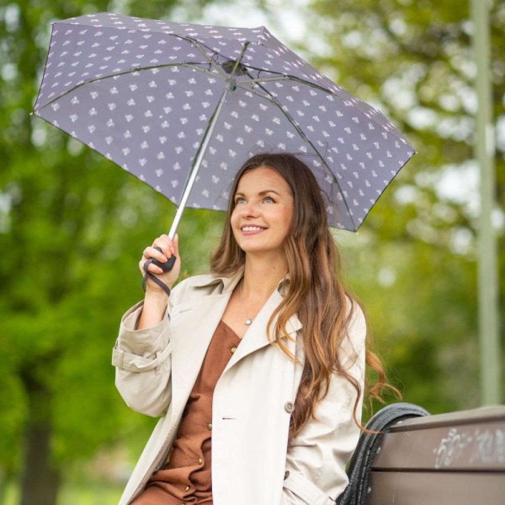 Парасолька жіноча є найбільш компактною моделлю механічної парасольки. Його розмір у складеному вигляді становить лише 15 сантиметрів. Колір бані та малюнок на ньому підвищить вам настрій у дощову, похмуру погоду.