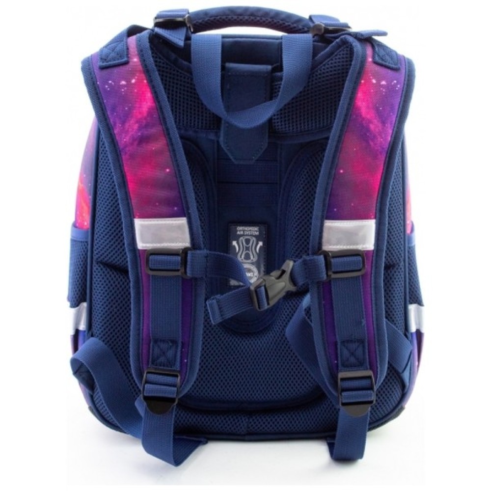 Рюкзак містить: 1 основне відділення; 2 бічні кишені для пляшечки та парасольки; жорстка ортопедична спинка; ергономічні S-подібні лямки; функціональний органайзер з гумкою та розділювачами для книг; нагрудний ремінь для додаткової фіксації; надійна фурнітура; світловідбивні елементи; міцна ручка та ручка-петля; прогумоване дно з ніжками.