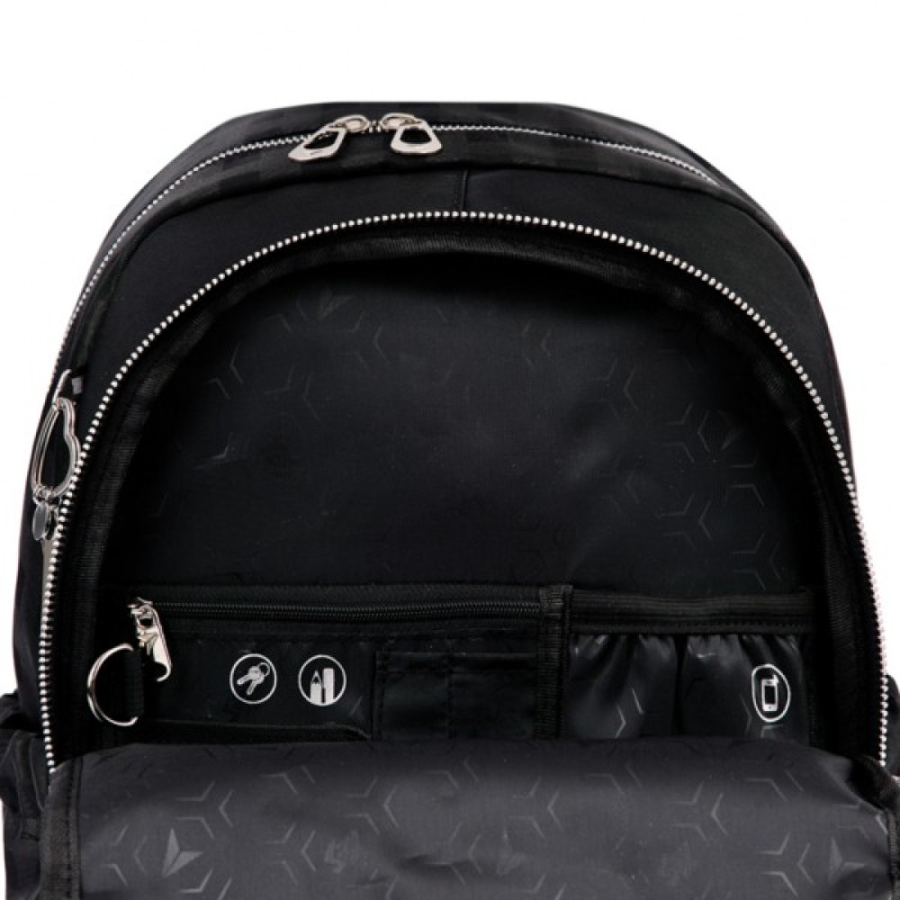 Рюкзак Yes TS-47 Angel Bear вибір для дівчинки, яка любить поєднувати різні стилі. Ефектний чорний дизайн надає аксесуару відтінок бунтарства, але водночас зберігає милий і дівочий характер, завдяки ніжним елементам. Цей рюкзак прекрасно підходить для сучасних модниць, які хочуть виглядати яскраво і самобутньо. В дизайні використана техніка «принт рідким металом». В поєднанні з металевим брелоком дизайн рюкзака виглядає дуже стильно.