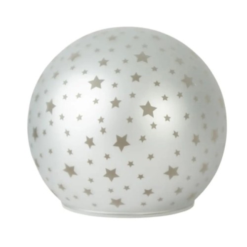 Декоративний світильник Chomik у формі кулі — це вишуканий елемент святкового або повсякденного інтер’єру, який наповнює простір м’яким світлом і атмосферою затишку. Виготовлений зі скла, цей білий світильник має елегантний візерунок на поверхні та вбудовану LED-підсвітку, що створює ефект зоряного неба. Завдяки компактному розміру 12×11 см він легко розміщується на полицях, столах чи підвіконнях, додаючи інтер’єру чарівного сяйва.