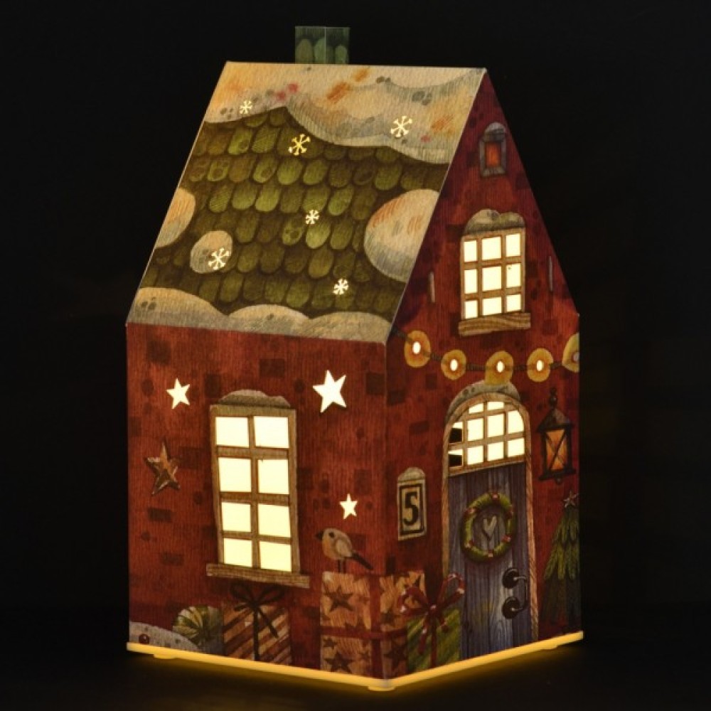 Модель: Будиночок-світильник Картон LED Червоний 21см