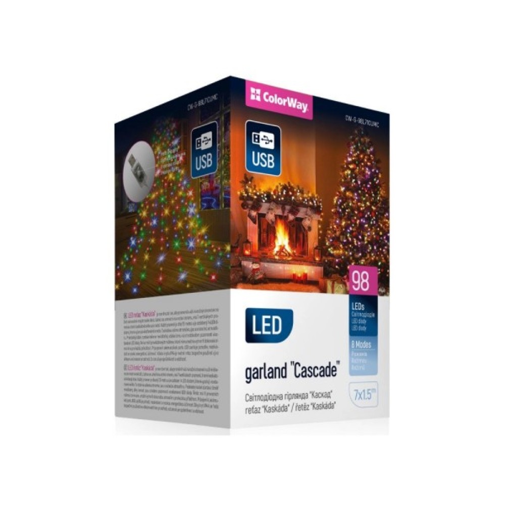 Прозорий кабель надає можливість фокусуватися на яскравості кольорових LED, роблячи їх центральною частиною вашого святкового декору. Таке поєднання естетики та якості робить ColorWay Каскад LED 98 не просто прикрасою, а справжнім елементом домашнього комфорту, що приносить радість та натхнення у кожен дом.