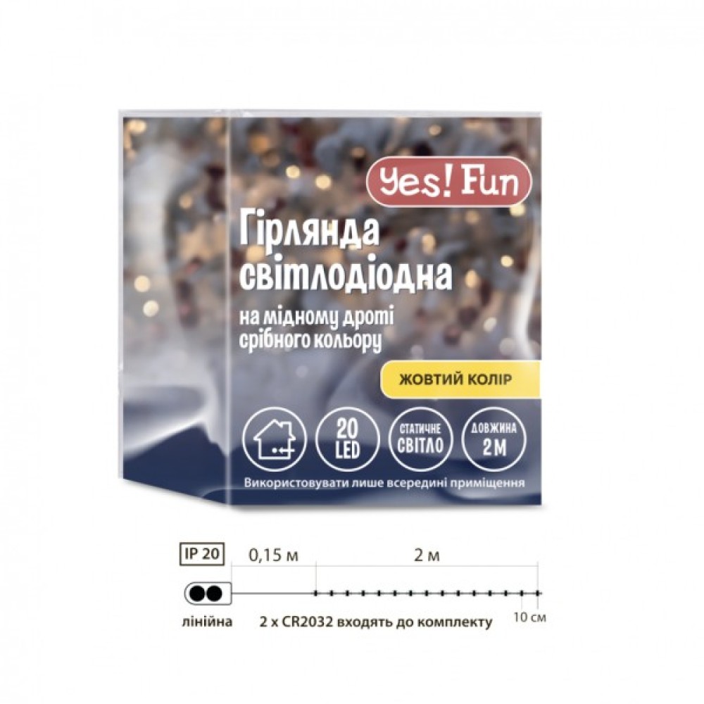 Цей виріб — блискуча комбінація якості, доступності та функціональності. Він стане прекрасним вибором для стильного і недорогого декору, що додасть магії у ваші святкові заходи. Зробіть свої свята яскравими разом з гірляндою YES! Fun, і насолоджуйтеся неповторними моментами тепла та радості в компанії близьких. Це не просто декорація, це справжній вибір зі смаком, здатний перетворити звичайний вечір на надзвичайно чарівний.