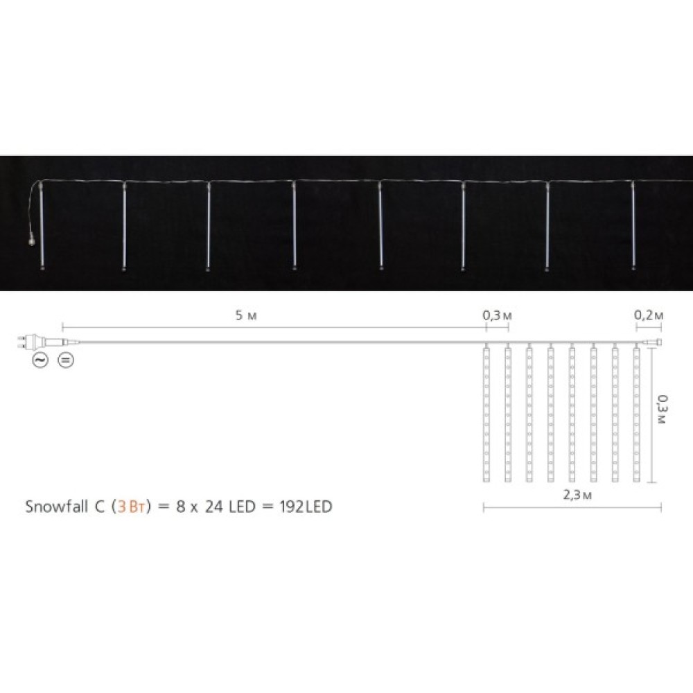Snowfall C 192LED 8х0.3 м IP44 EN Біла/Прозора