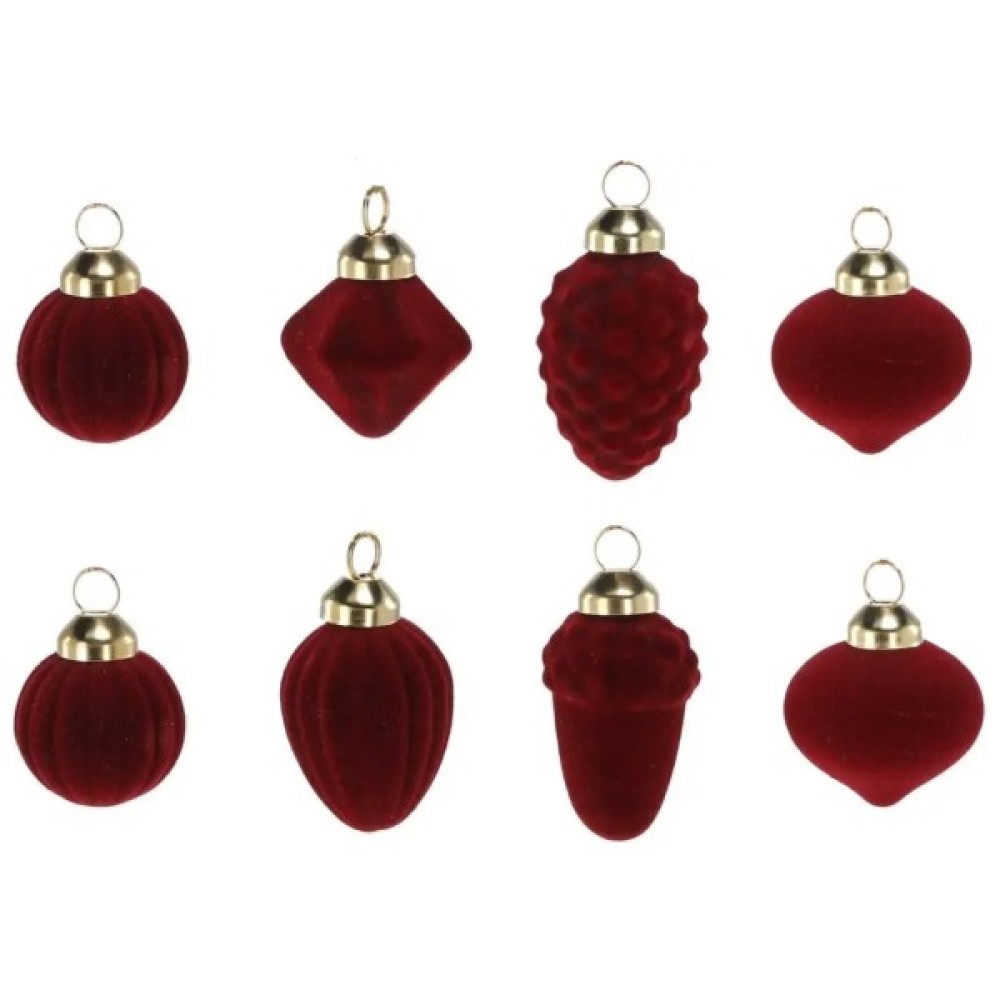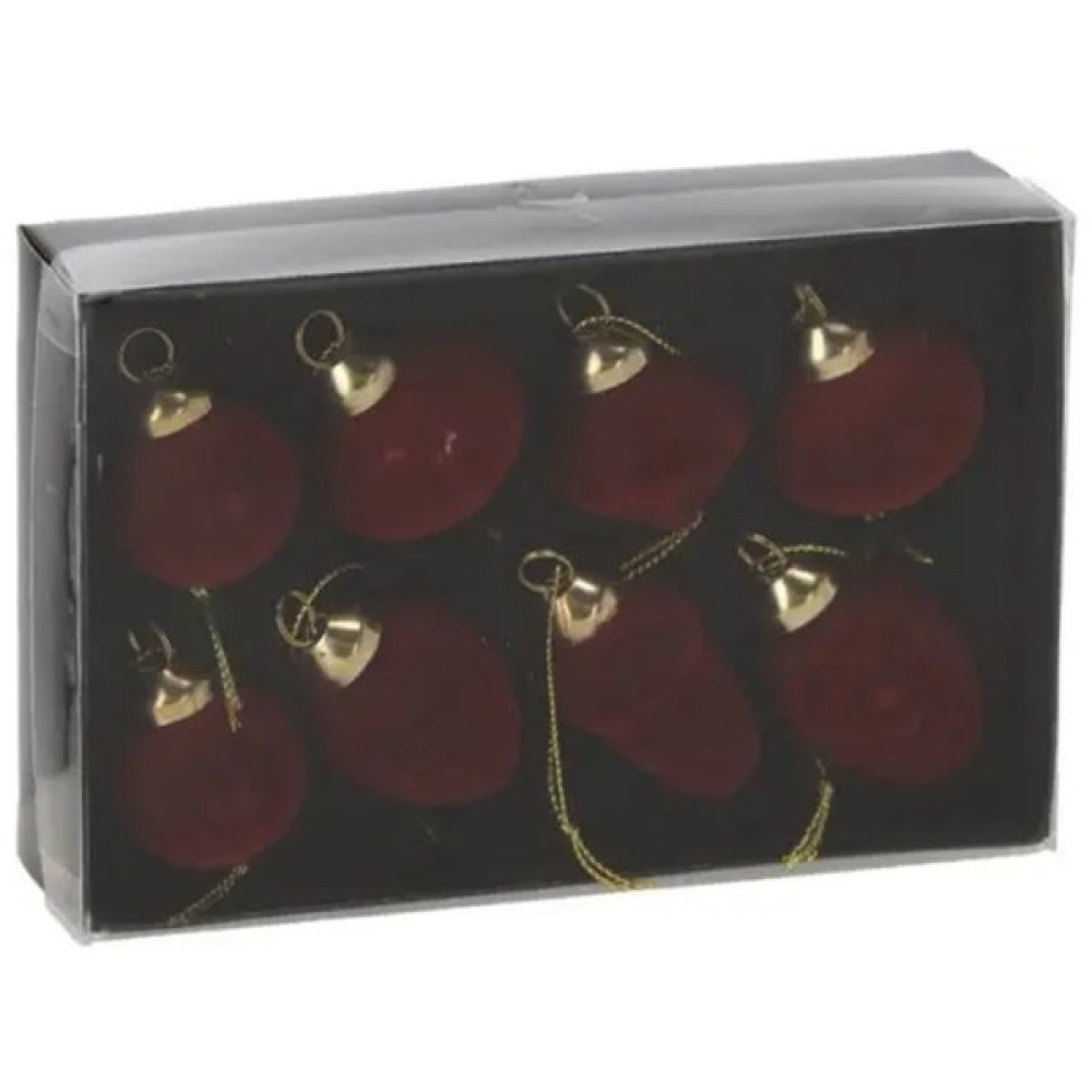 Набір Chomik з велюровим покриттям у насиченому відтінку бургунді — це стильне рішення для тих, хто шукає нетривіальний і водночас елегантний декор. У комплекті 8 скляних іграшок різної форми, що надають композиції динаміки та візуального об’єму. Завдяки матовій, м’якій на дотик поверхні прикраси виглядають дорого та вишукано. До кожної іграшки вже прикріплена нитка для підвішування, що робить набір готовим до використання одразу після розпакування.