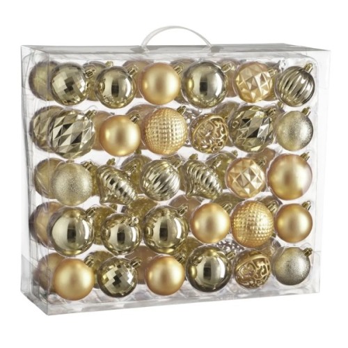Ялинкова, іграшка, House, Of, Seasons, Кульки, і, прикраси, Пластик, 60, шт, D7, см, D6, см, Шампань, 8720967923748