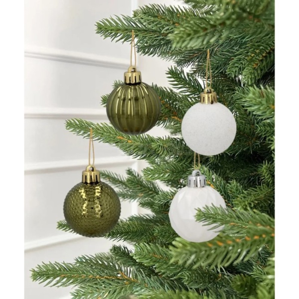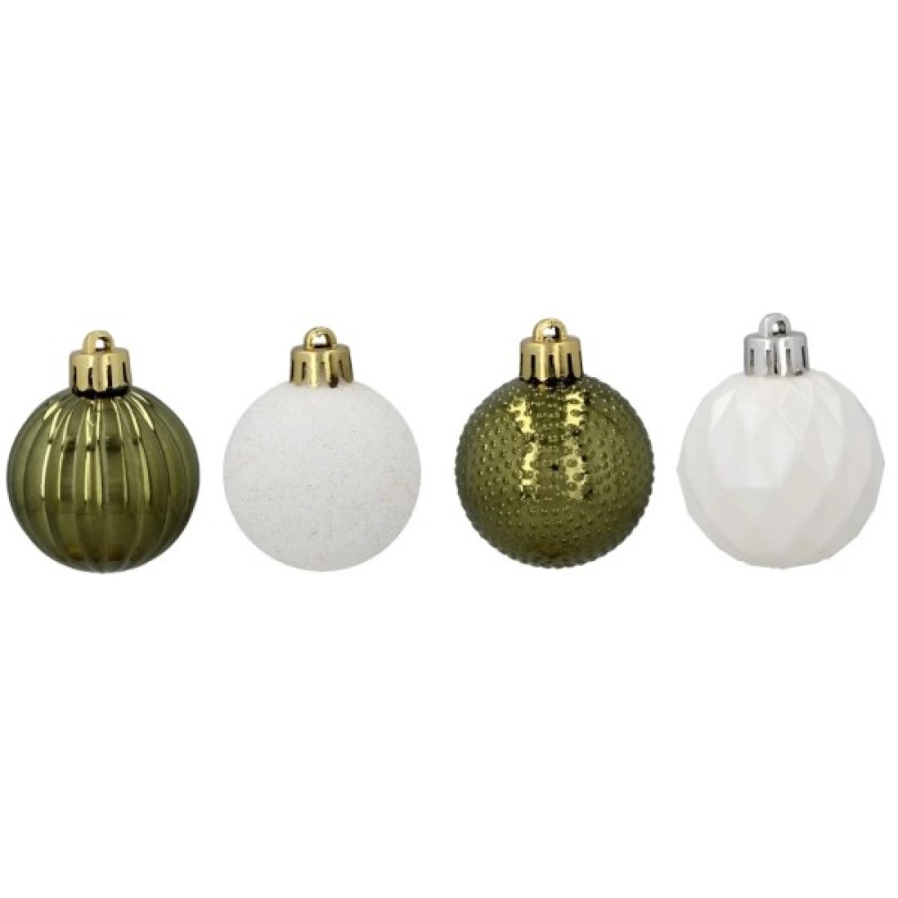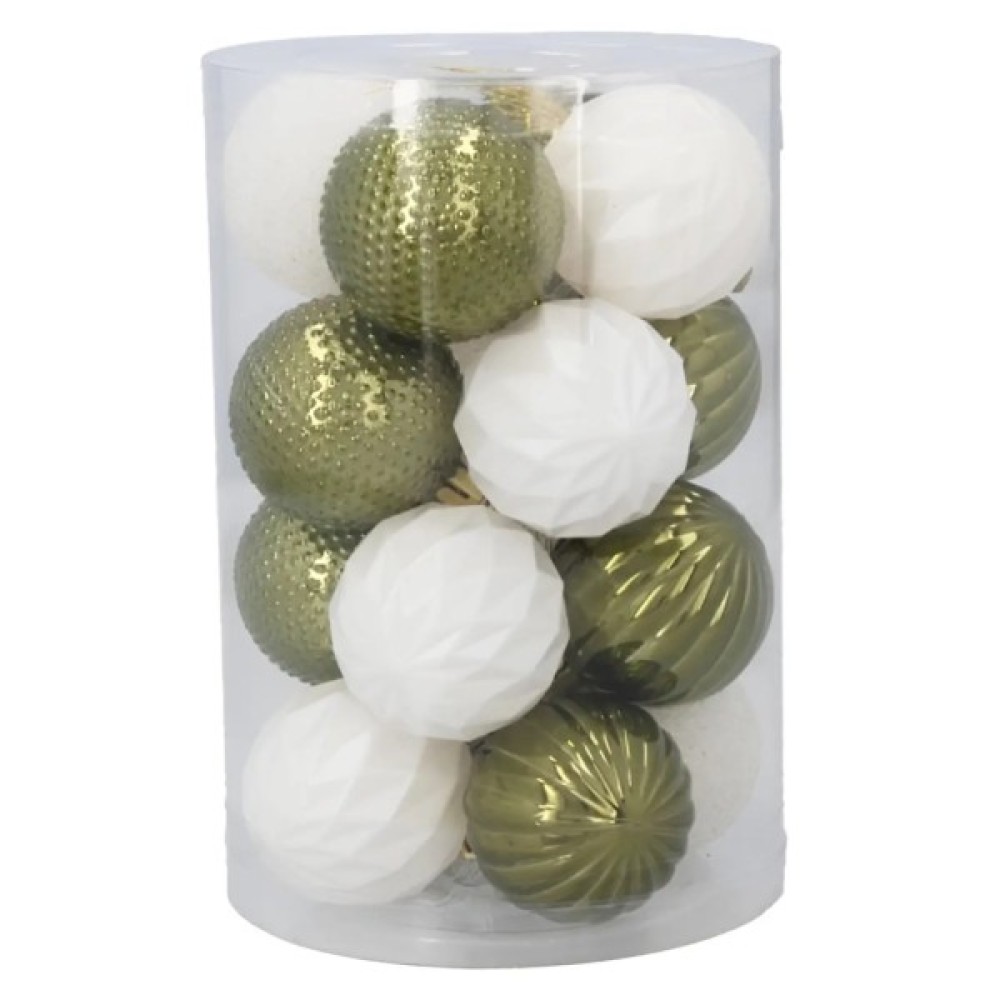 Ялинкова іграшка Chomik пластикові кульки 16 шт, 4 см, зелені і білі (5900779877351_2)