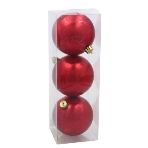 Ялинкова іграшка Chomik пластикові кульки 3 шт, 8см, червоні (5900779893870_3)