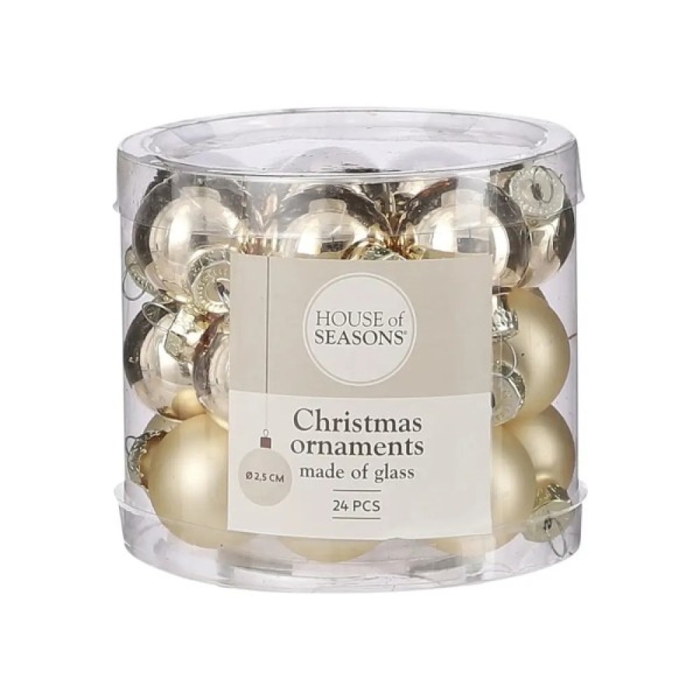 Ялинкова, іграшка, House, Of, Seasons, Скляні, кульки, 24, шт, D25, см, Шампань, 8718861800029