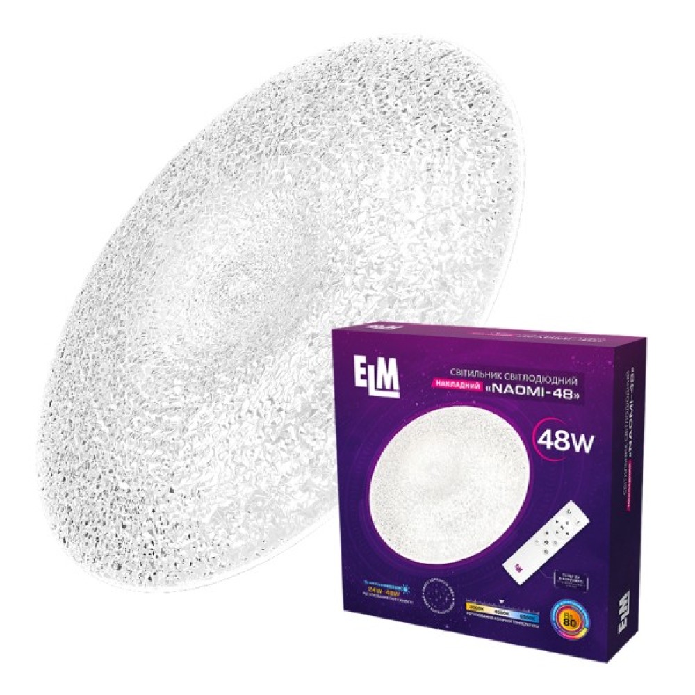 Світильник ELM NAOMI- 48W(+пульт) 3000-6500K (26-0118) – це ідеальне рішення для тих, хто шукає поєднання стилю, функціональності та економії енергії. З потужністю 48 Вт і світловим потоком 3600 люмен, цей світлодіодний світильник забезпечує яскраве освітлення, яке підходить для будь-якого приміщення: від вітальні до офісу.