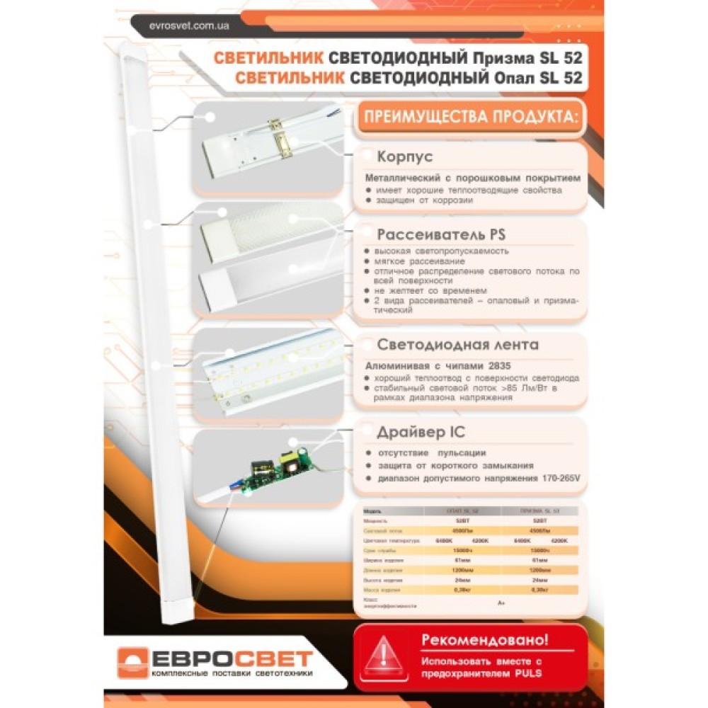 - Модель: 52Вт ОПАЛ-SL 4200К 4500Лм 1200мм