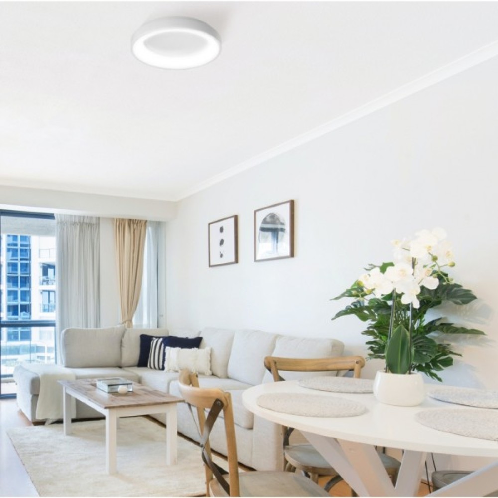 Джерело світла представлено високоекономічною LED-панеллю потужністю 72 Вт, яка забезпечує світловий потік у 4700 Лм. Це гарантує яскраве та рівномірне освітлення простору без додаткових витрат на електроенергію. Світильник пропонує можливість регулювання колірної температури в діапазоні від 2700 до 6000 К, що дозволяє створити теплу, нейтральну чи холодну атмосферу в залежності від ваших потреб.