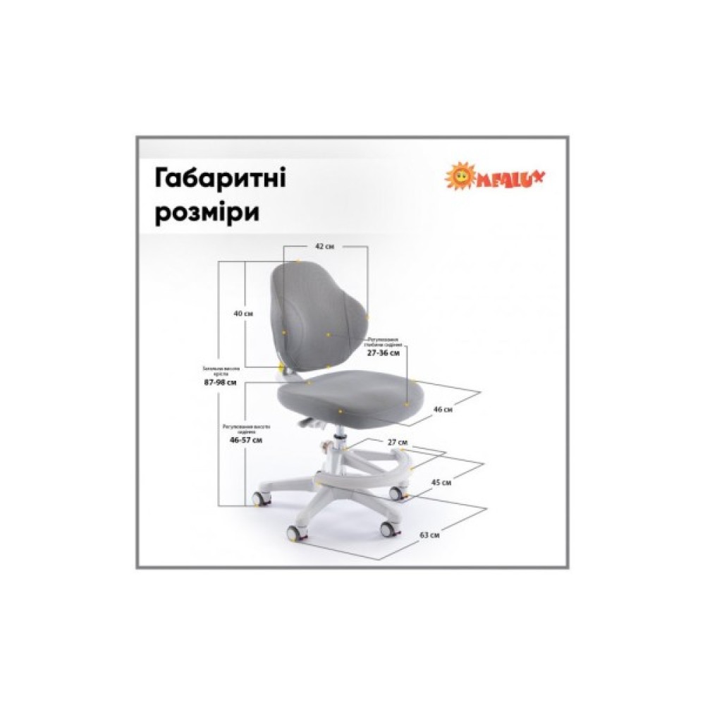У крісла синхронне регулювання висоти спинки та глибини сидіння. Для зміни цих параметрів під сидінням є спеціальний гвинт. Висота всього крісла змінюється за допомогою газліфта, який не крутиться довкола своєї осі. Одне плавне натискання важеля — і крісло легко змінює свою висоту.