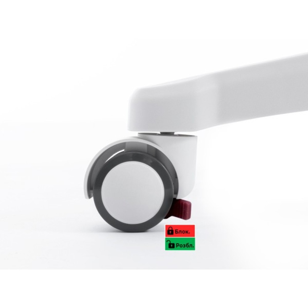 Коліщата з м'яким покриттям не ушкоджують підлогу і автоматично блокуються при навантаженні від 25 кг. Блокування вимикається спеціальними стопорами.