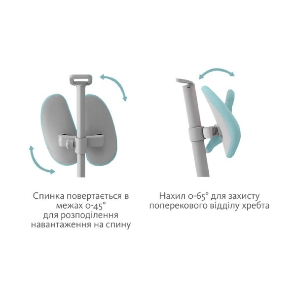 - Спеціальний ергономічний дизайн спинки крісла справляє ефект формування постави та рівної спини в дитини, знімає негативні відчуття защемлення м'язів спини.