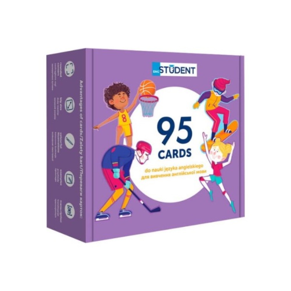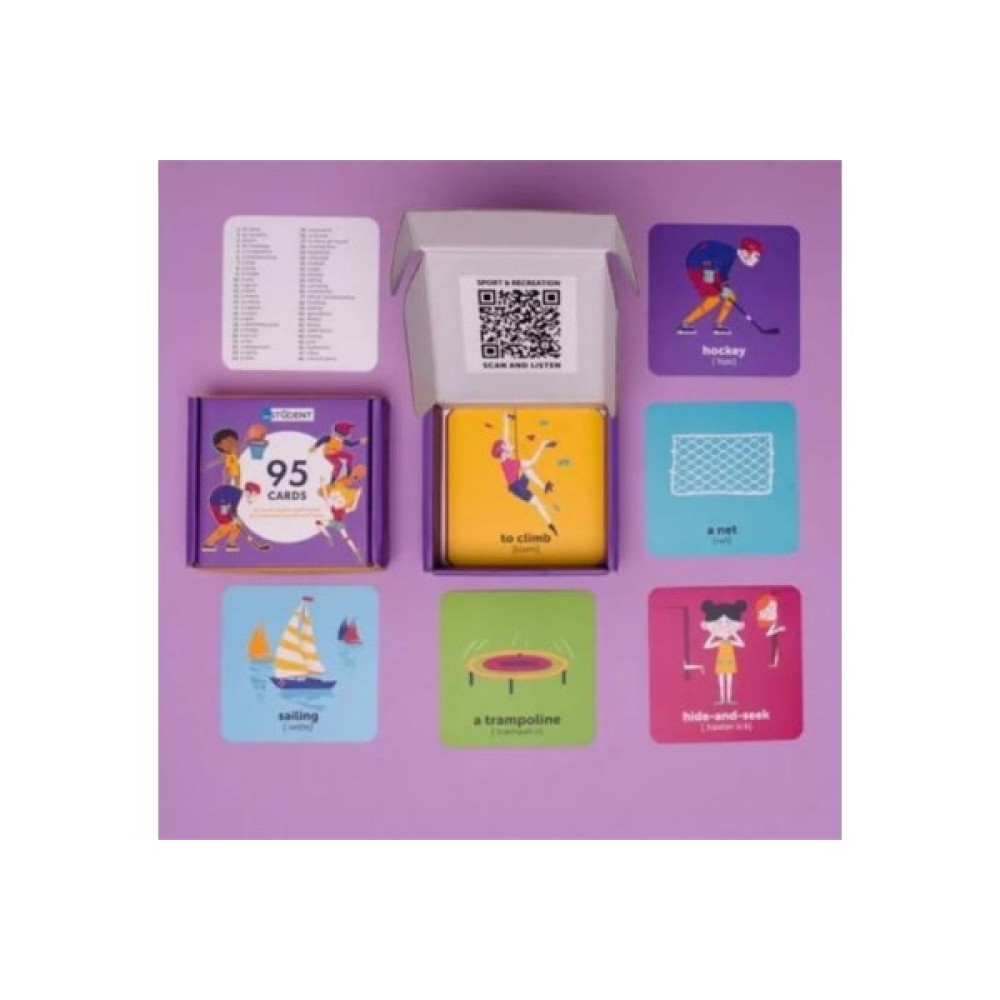 Шкільна англійська «Спорт і дозвілля» - тематичний набір карток для учнів 3-5 класів. У наборі 95 двосторонніх карток із аудіосупроводом.