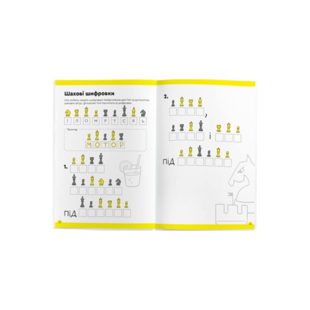 У зошиті зібрано 73 завдання, які допоможуть підготуватися до шахів: жодних схем та дебютів — лише веселощі!