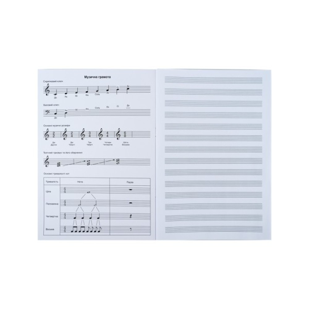 Нотний зошит підходить для занять музикою у загальноосвітніх та музичних школах, на різноманітних вокальних та інструментальних гуртках.