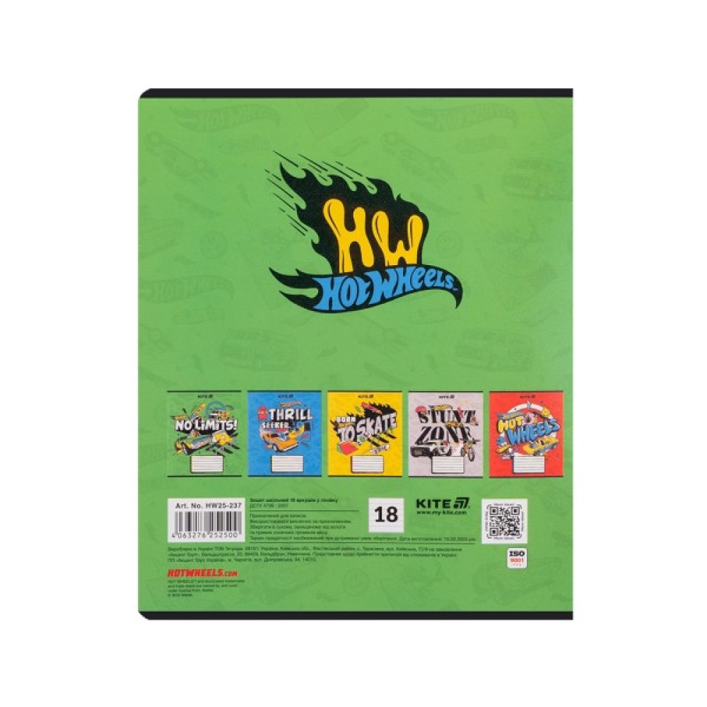 Зошит Kite Hot Wheels, 18 аркушів, лінія (HW25-237)
