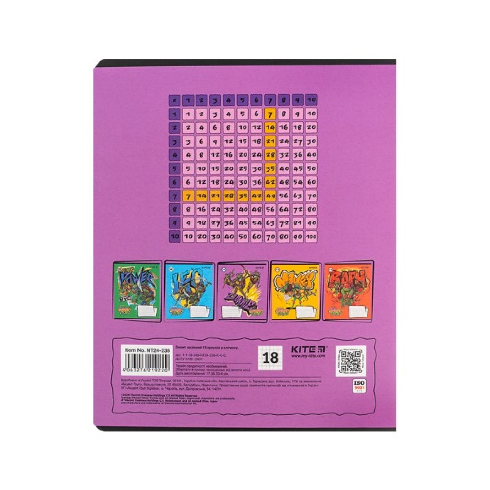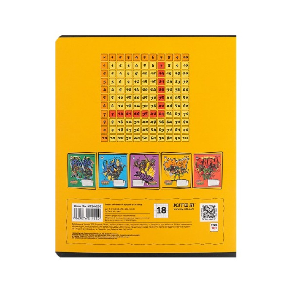 Зошит Kite Ninja Turtles, 18 аркушів, клітинка (NT24-236)