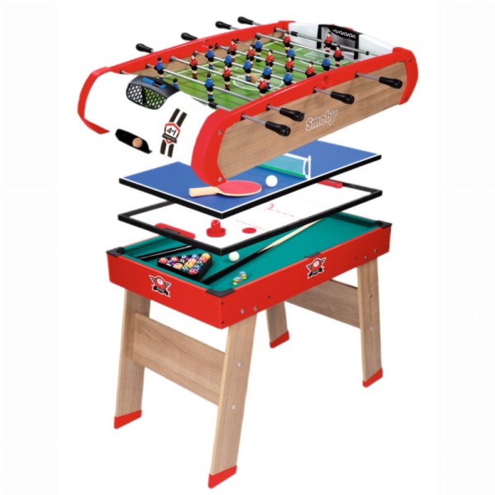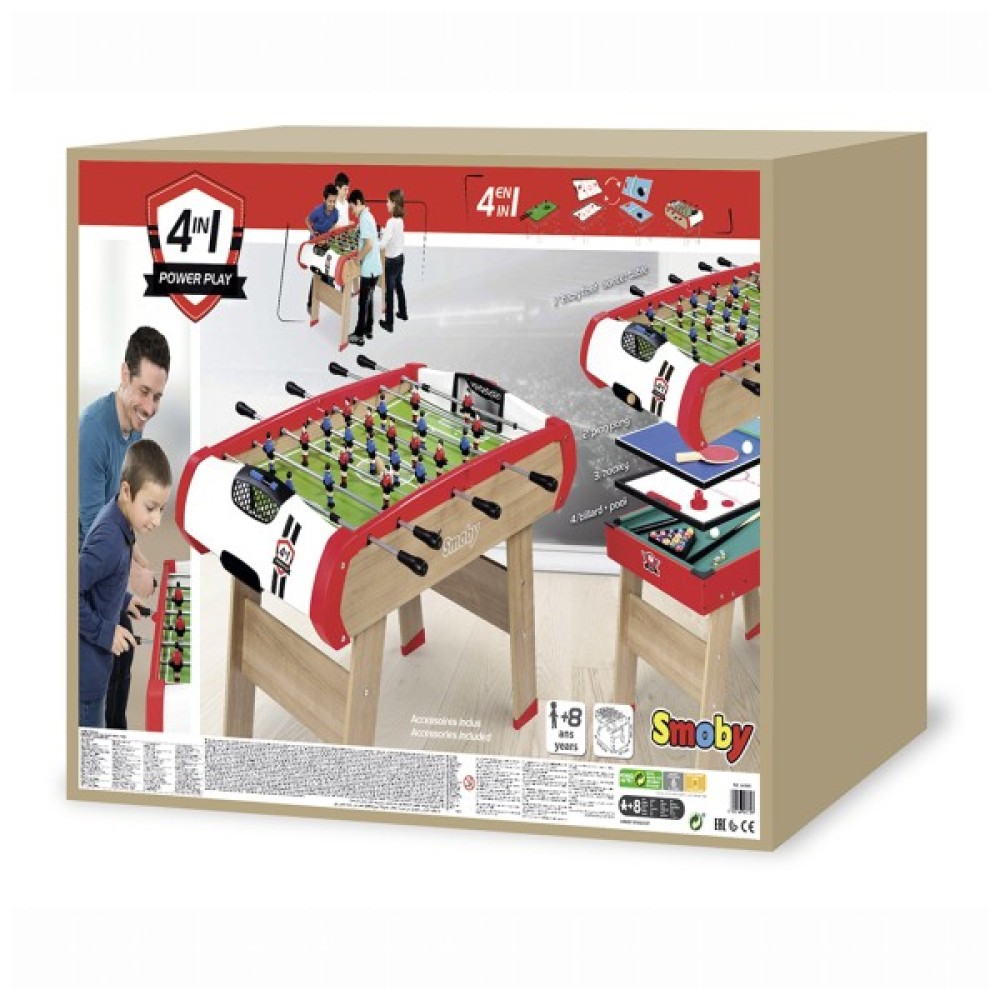 Дерев'яний багатофункціональний стіл Smoby Павер Плей — це вражаюча гра в настільний футбол або більярд, настільний теніс або хокей.