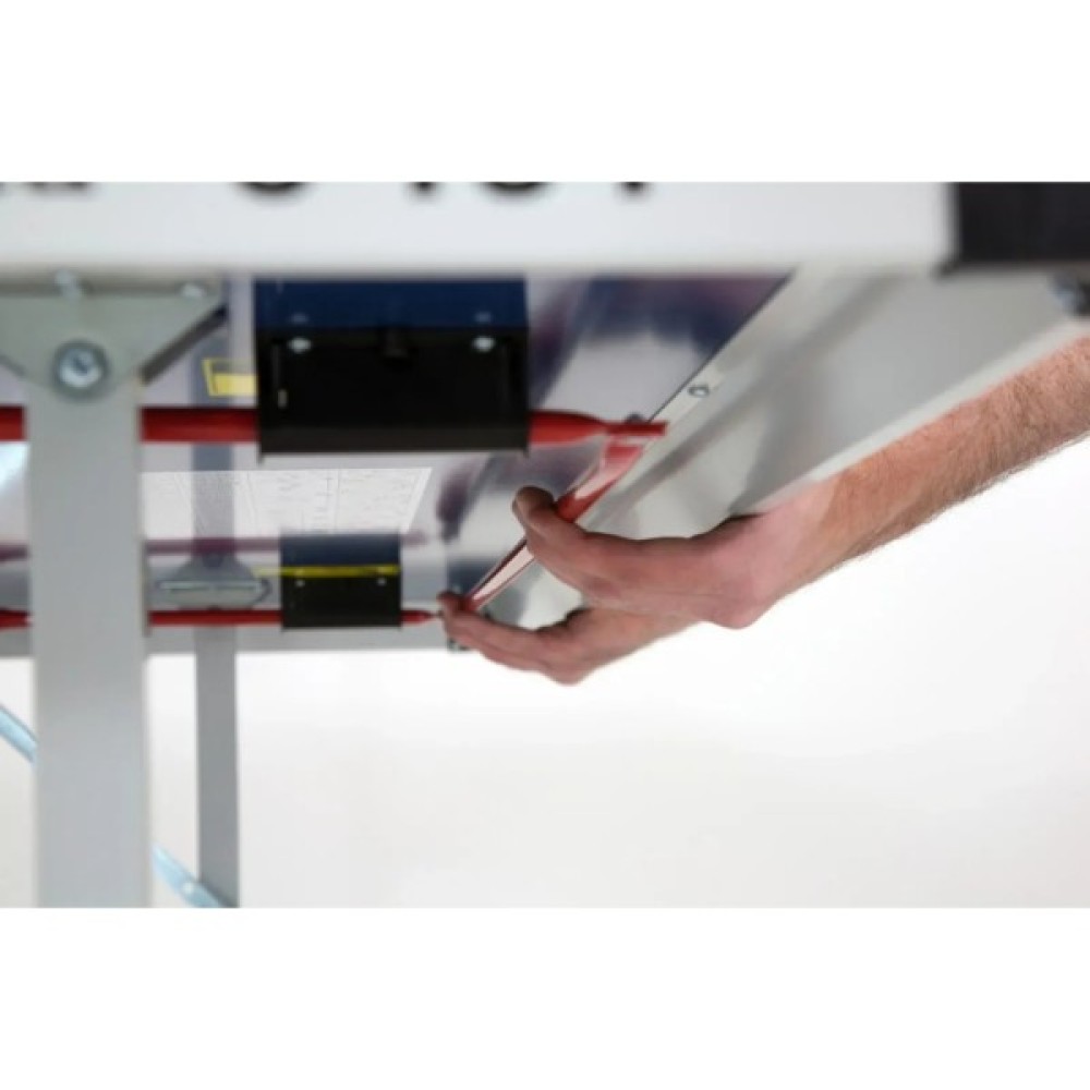 • Економія простору для зберігання - інноваційний механізм складання SMS (Smart Manual System) ігрової поверхні за допомогою ручки, розташованої під стільницею дозволяє легко переводити стіл в складений стан, що запобігає перекиданню, дозволяє легко складати дві окремі половини столу, заощаджуючи цінний простір.