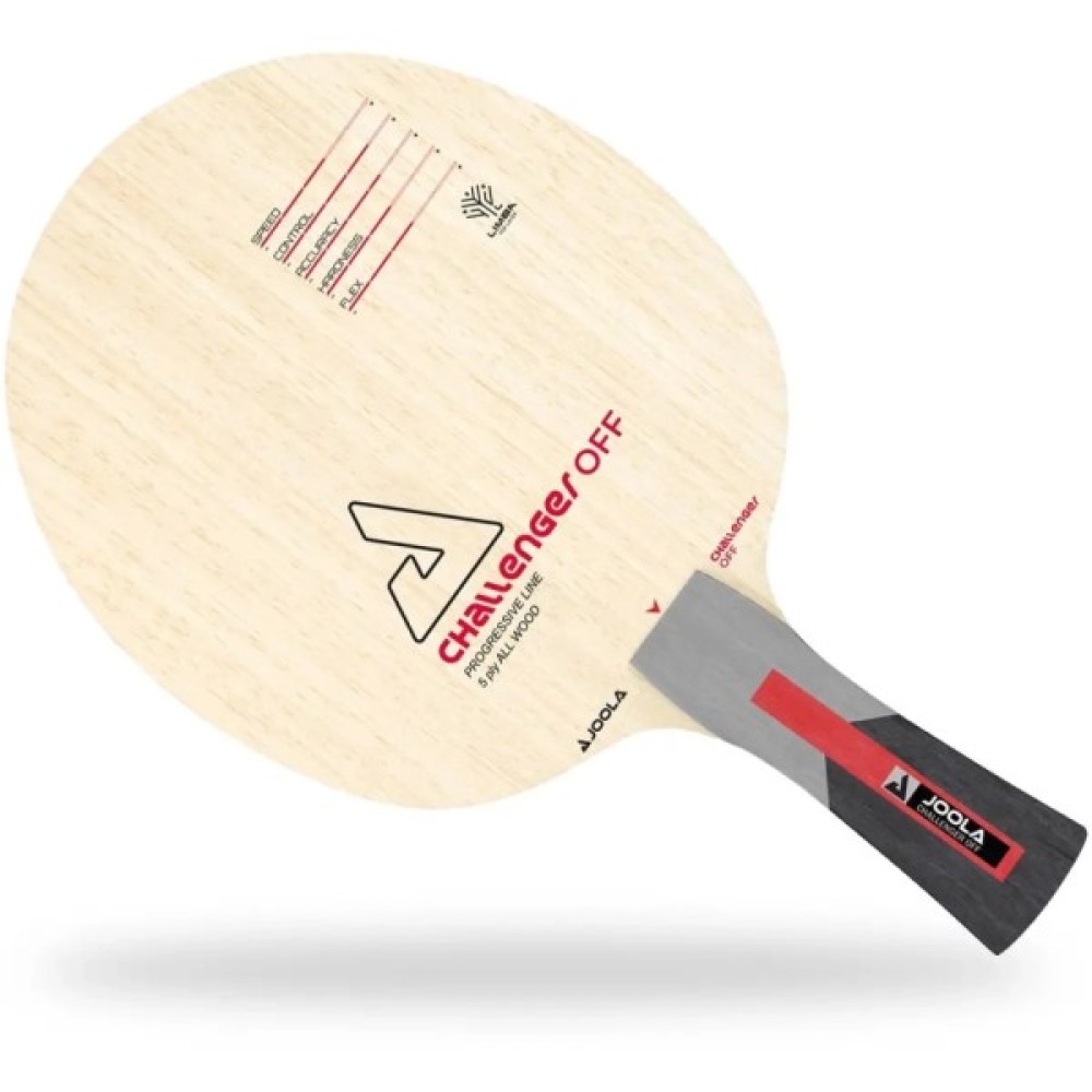 Joola Challenger OFF ідеально підходить для гравців, яким потрібно лезо (основа) із регульованою швидкістю, який забезпечує відмінні показники обертання та високу криву польоту. Завдяки високоякісному виготовленню та перевіреним породам деревини, це дозволить вам вивести атакувальну гру орієнтовану на спін на новий рівень. Відчуйте ідеальну взаємодію швидкості та контролю з лезом Joola Challenger OFF – ідеальним лезом для атакувальних гравців орієнтованих на спін.