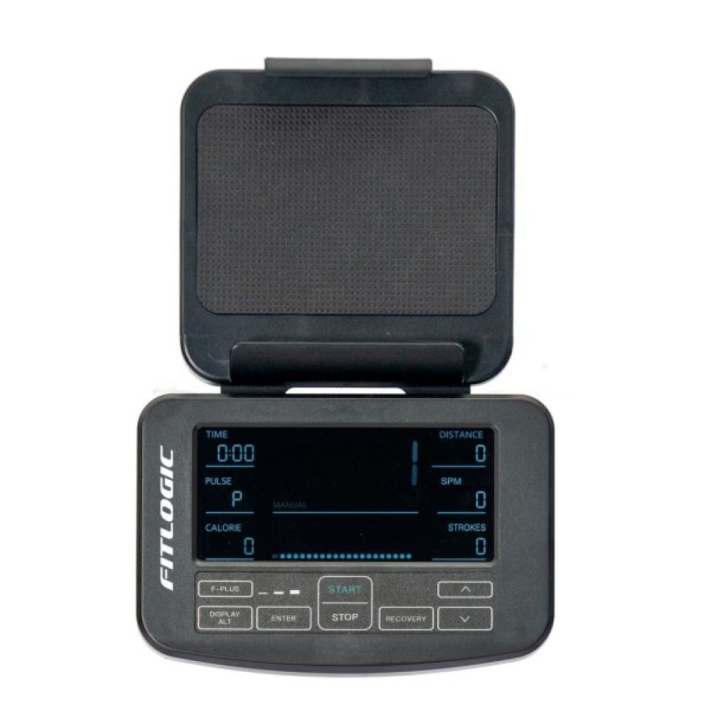 ФункціоналFitLogic R2201P оснащений LCD дисплеєм, який надає користувачам усі необхідні дані для моніторингу та аналізу тренування. Він відображає час тренування, темп на дистанції в 500 метрів, загальну пройдену дистанцію, пульс, кількість спалених калорій, кількість гребків за хвилину (SPM), загальну кількість зроблених гребків і потужність у ватах. Ці показники дають змогу відстежувати прогрес і ефективність тренувань у реальному часі, допомагаючи встановлювати й досягати конкретних результатів, а також підтримувати мотивацію та фокус на них.