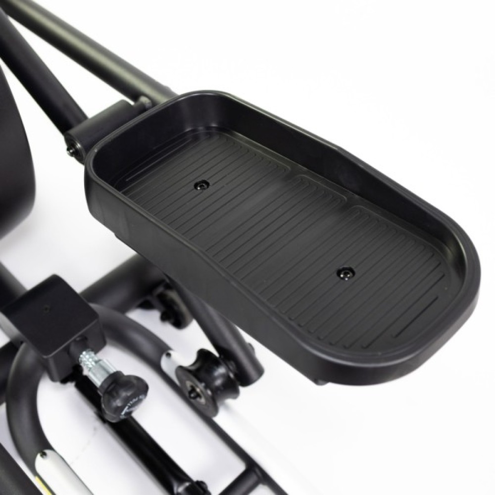 Довжина кроку 450 мм забезпечує природність руху, що робить тренування максимально ефективними. Максимальне навантаження – 130 кг, що дозволяє використовувати орбітрек людям із різною комплекцією.