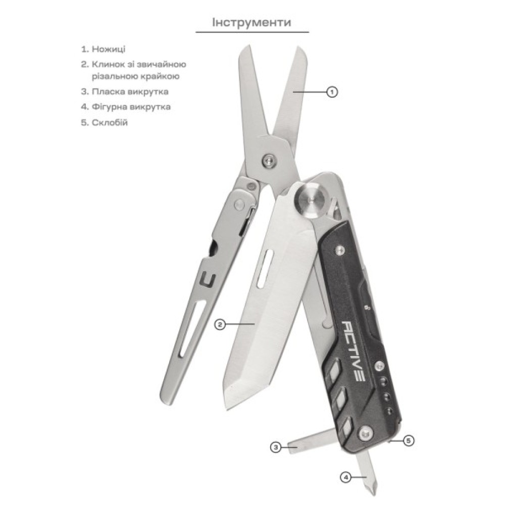 Мультитули бренду Active Knives&Tools - це сучасні, універсальні інструменти, головною відмінністю яких, є співвідношення ціни-якості в порівнянні з мультитулами інших брендів. Мультитули ідеально справляються з поставленими завданнями завдяки інструментам з високоякісної нержавіючої сталі. Ергономічні руків’я відмінно лежать в руці та забезпечують надійний хват. Це незамінні супутники як у повсякденному житті, так і під час відпочинку чи туризму.
