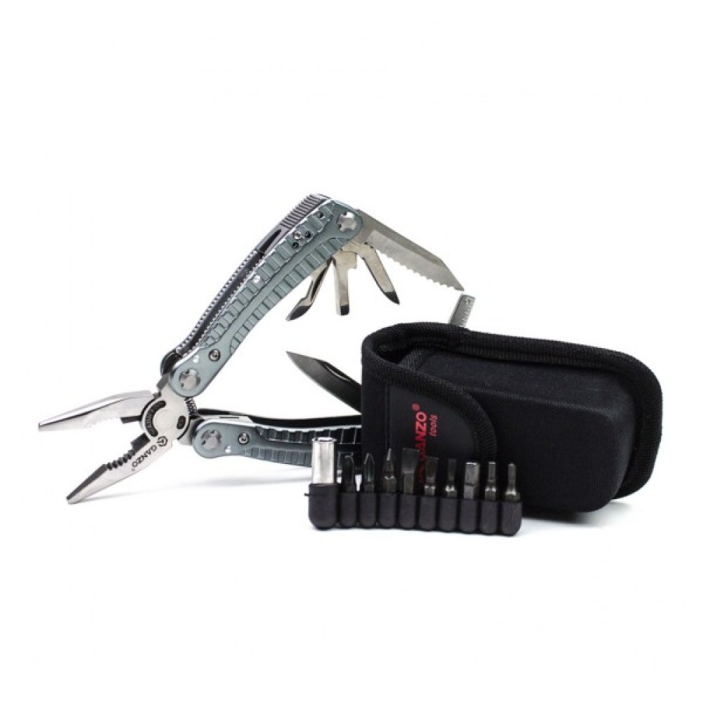 Практичний і зручний у використанні, багатофункціональний мультитул G105 допоможе власнику в будь-яких ремонтних роботах (в повсякденному житті, на природі і не тільки)! Мультитул характеризується вражаючим вибором інструментів, починаючи від простого ножа для відкривання консервних банок, і закінчуючи двома видами викруток. Також мультитул Ganzo G105 оснащений двома лезами (серрейтор, пряме), лінійкою, кусачками, адаптером для змінних біт, відкривачкою для пляшок і напилком.