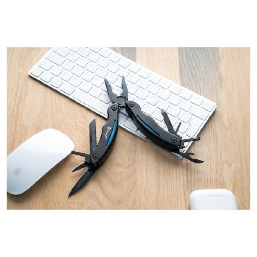 Інструменти в комплекті Плоскогубці; Кусачки; Ніж; Шило; Відкривачка для пляшок; Викрутка хрестова; Викрутка плоска мала; Серрейторний ніж; викрутка середня; викрутка довга