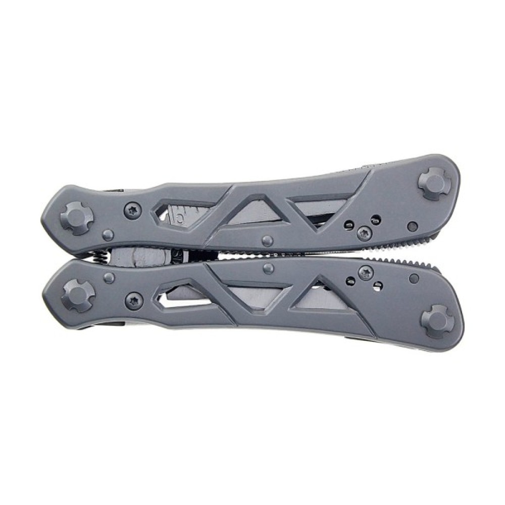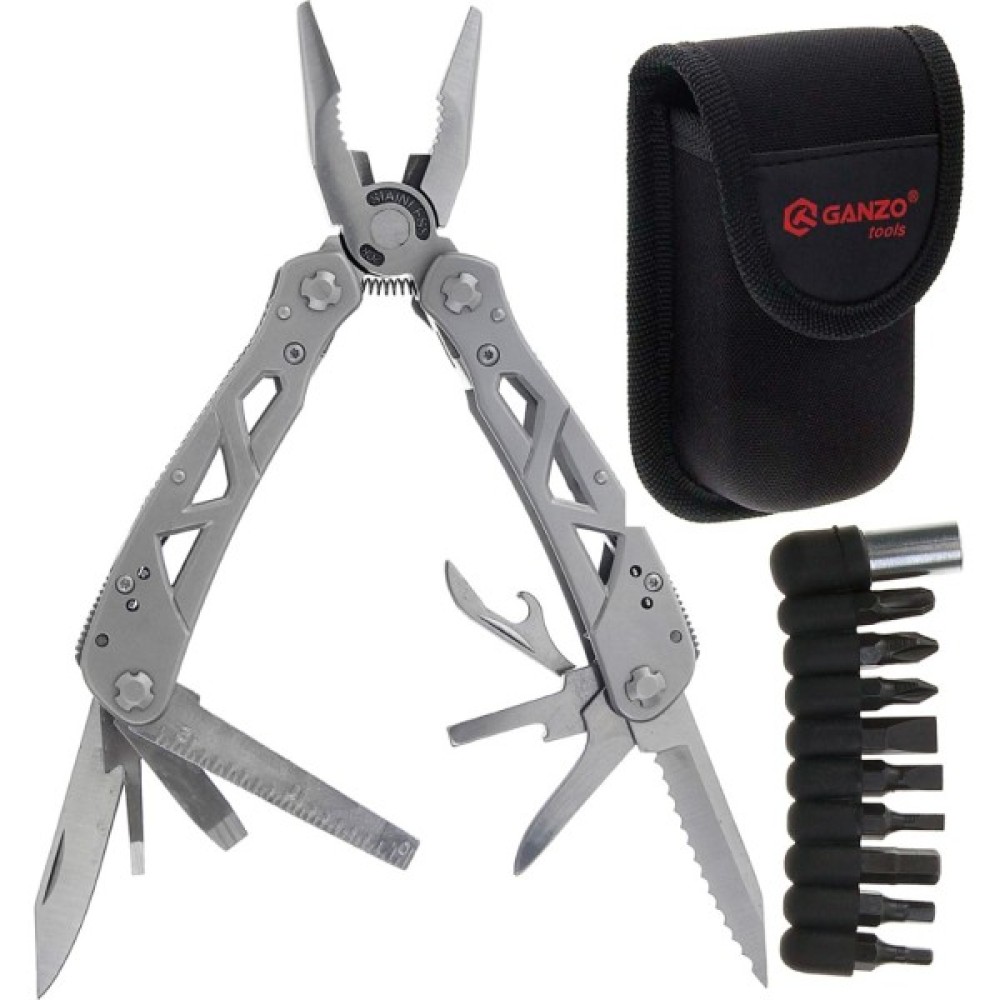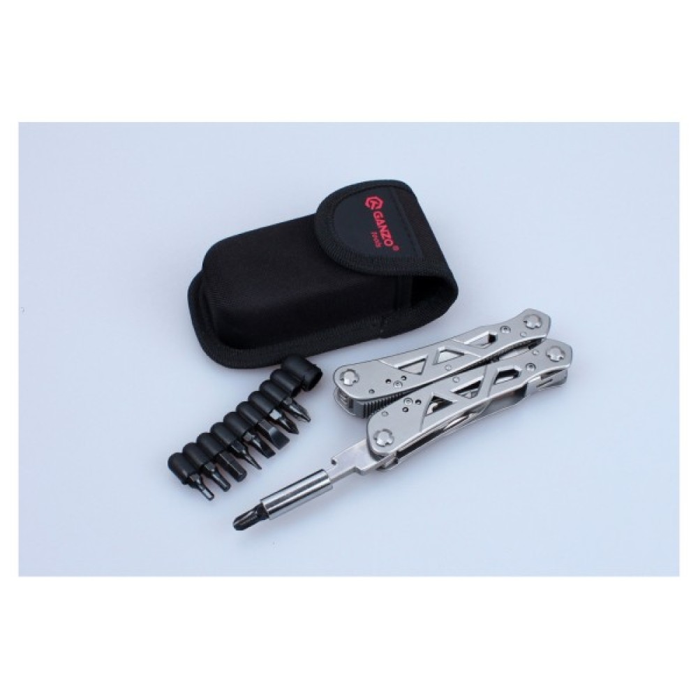 Основний за принципом розміщення інструмент в мультитулі Ganzo G112 - це плоскогубці. Вони досить потужні, щоб бути в змозі виконувати серйозні роботи. У цьому ж інструменті передбачена функція кусачок, можливість щільного захоплення плоских і круглих предметів. Губки плоскогубців в робочому стані залишаються завжди трохи відкритими, оскільки вони підпружинені. Роль ручок для цього інструменту виконують рукоятки мультитула. Вони ж служать своєрідним чохлом для складених плоскогубців і місцем зберігання інших інструментів.