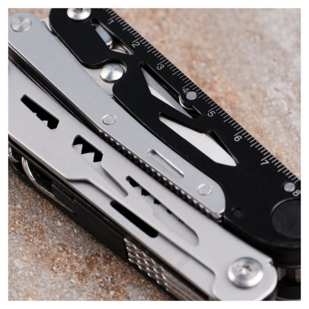 У руківʼях сховані такі інструменти: клинок з прямим лезом, пила з серейторним заточуванням, хрестоподібна викрутка, штопор. Ножиці також є частиною мультитула. Вони від'єднуються від основної конструкції для зручної експлуатації. З однієї зі сторін руківʼя ножиць нанесено сантиметрову лінійку.