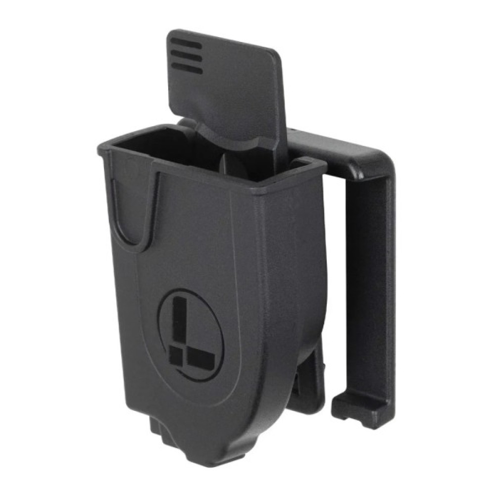 Усі ріжучі елементи у складеному чи відкритому стані перебувають у безпеці, що мінімізує ризик випадкових порізів. Ножиці-мультитул оснащені універсальним механізмом кріплення, що складається з основи та ножен, з'єднаних металевим болтом. Дизайн ножен дозволяє закріплювати інструмент як у складеному, так і у розкладеному вигляді. Основу можна встановити з будь-якої сторони ножен і дозволяє обертати і фіксувати ножни у 12 положеннях на 360 градусів (при цьому осьовий болт потрібно трохи послабити). Ножиці фіксуються у робочому стані двома пружинними металевими кнопками, виконаними у вигляді трикутників та доповненими символом замка. Для складання інструменту потрібно одночасно або по черзі натиснути кнопки і повернути рукоятку на 180 градусів. Витягування інструменту можливо однією рукою.