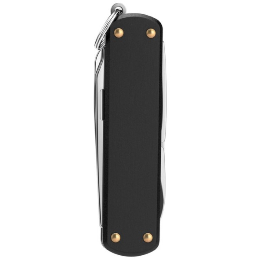 Мультитул оснащений складаними інструментами, що виконують 5 функцій: клинок з нержавіючої сталі 420J2 з прямим заточуванням, ножиці, напилок з плоскою викруткою на кінці, а також отвір для металевого кільця, щоб кріпити конструкцію на ключі, сумці або лямці рюкзака.
