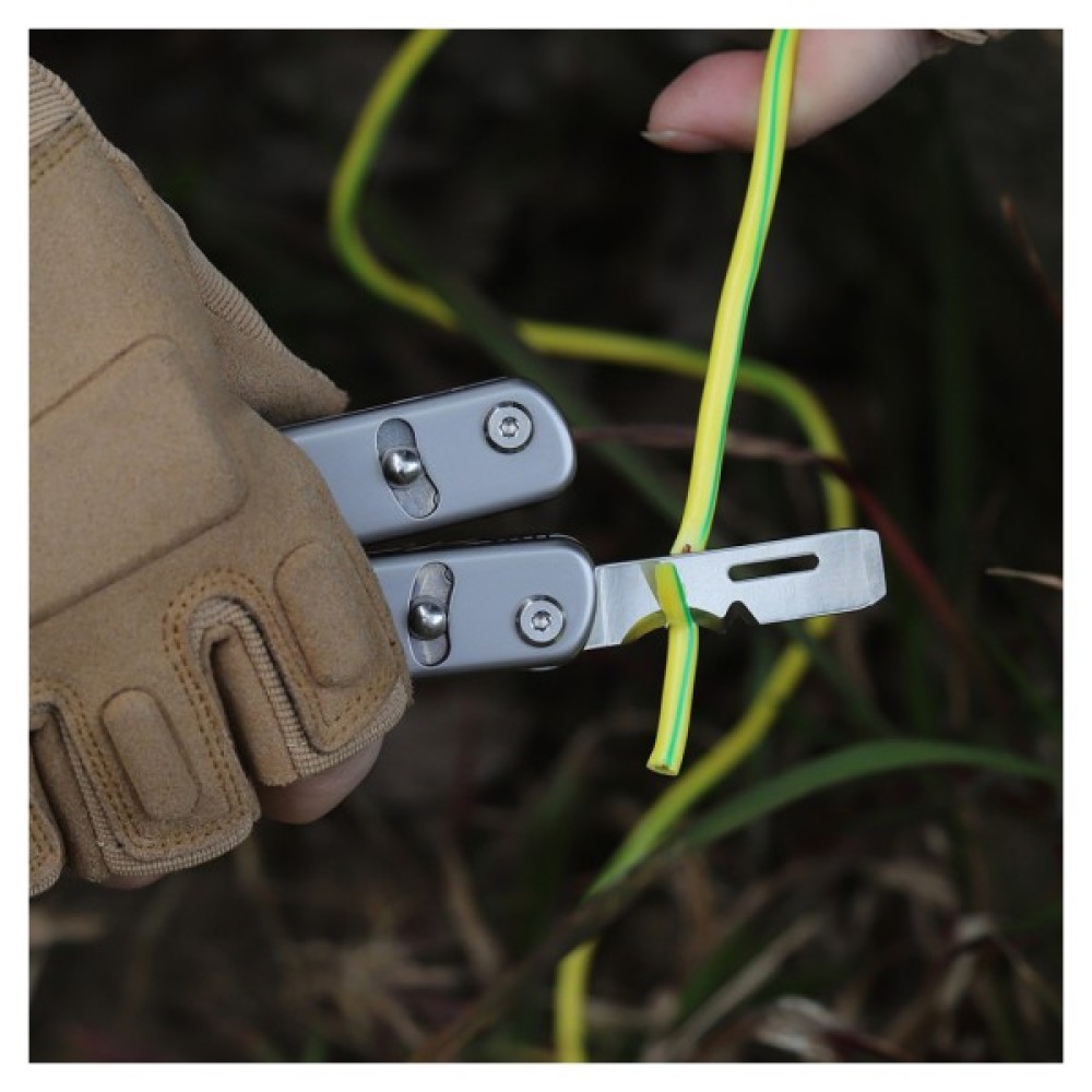 Елементи конструкції виконані з нержавіючих металів: змінний різак виготовлений зі сталі 5Cr15MoV, плоскогубці — з марки 2Cr13, інші елементи — з марки 3Cr13. Матеріали не окислюються під впливом агресивних середовищ, а піскоструминна обробка усуває металічний блиск, матуючи відбитки пальців та дрібні подряпини.