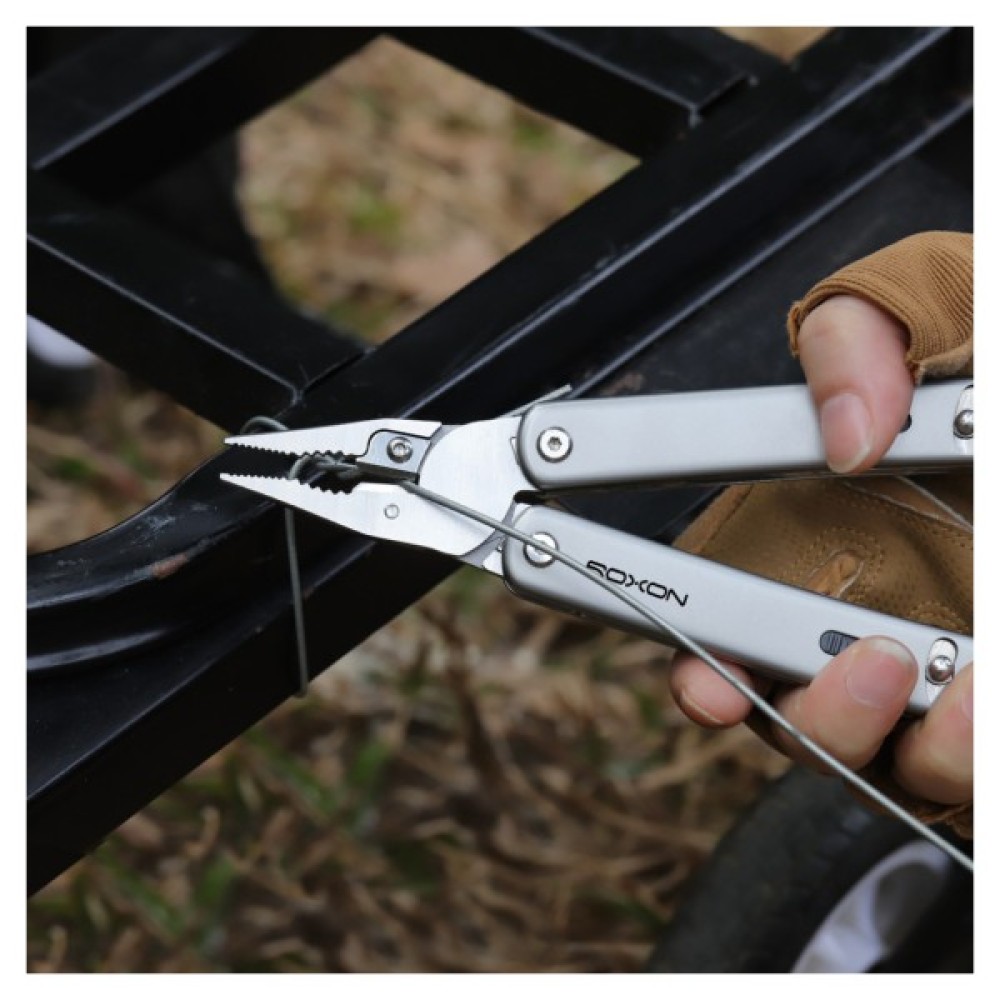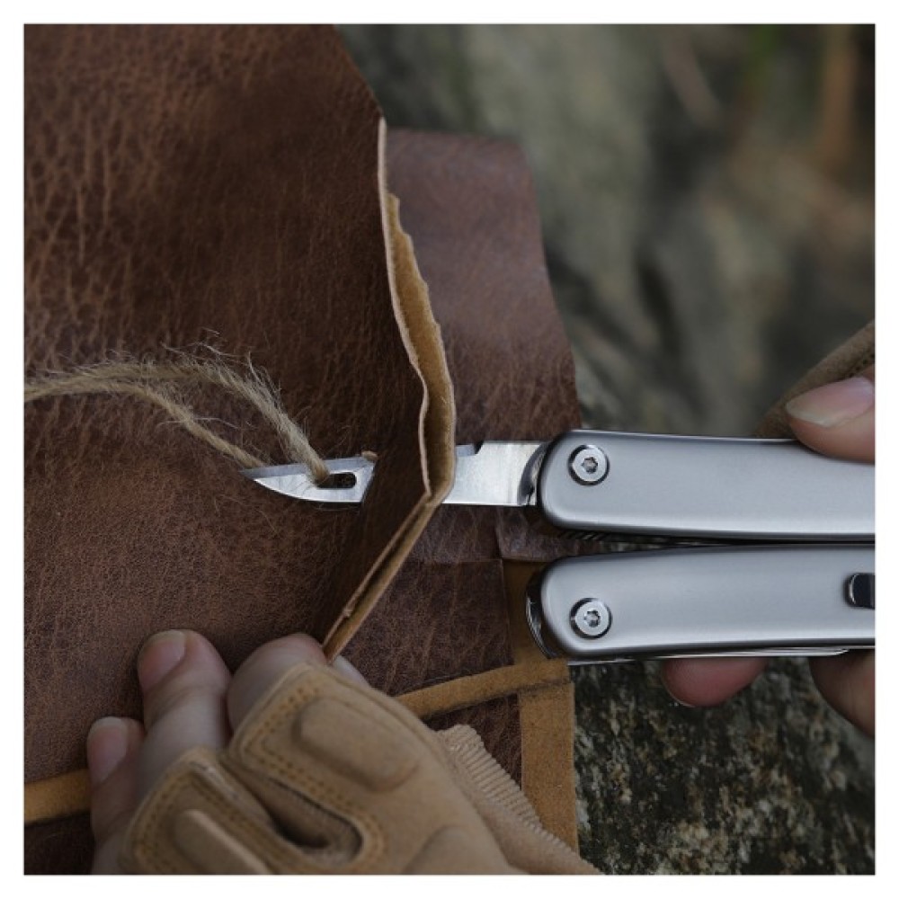 Функціонал можна доповнити 32 змінними інструментами, що підходять для вирішення певних завдань (комплектуючі купуються окремо). Відкривання мультитула здійснюється одним рухом руки з фіксацією кожного елемента за допомогою системи блокування, яка не дає виробу скластися під час навантаження.